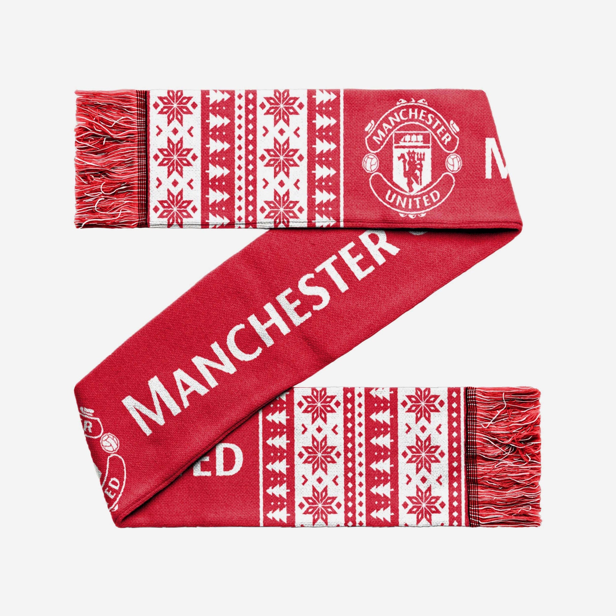It may be winter outside, but that's no excuse to stop being a great fan. Spread some seasonal cheer and keep warm with this Manchester United FC Holiday Scarf.