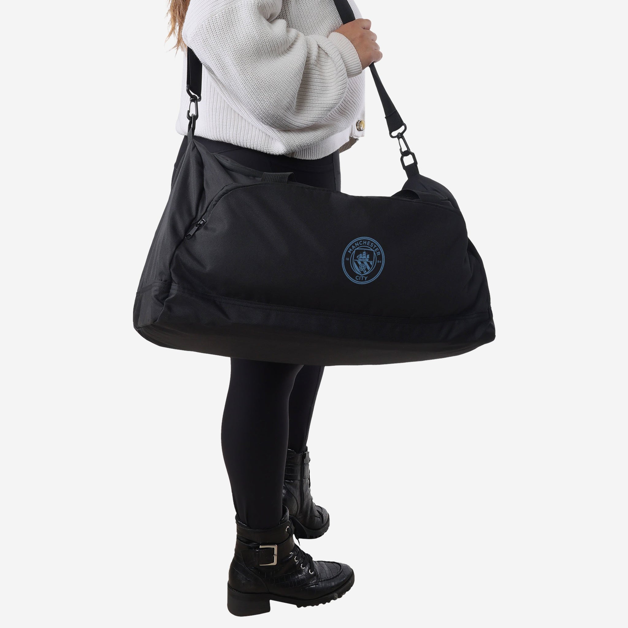 Want to make a stand for sustainability and carry your things wherever your team spirit takes you? Then you'll love this Manchester City FC Black Recycled Duffle Bag!