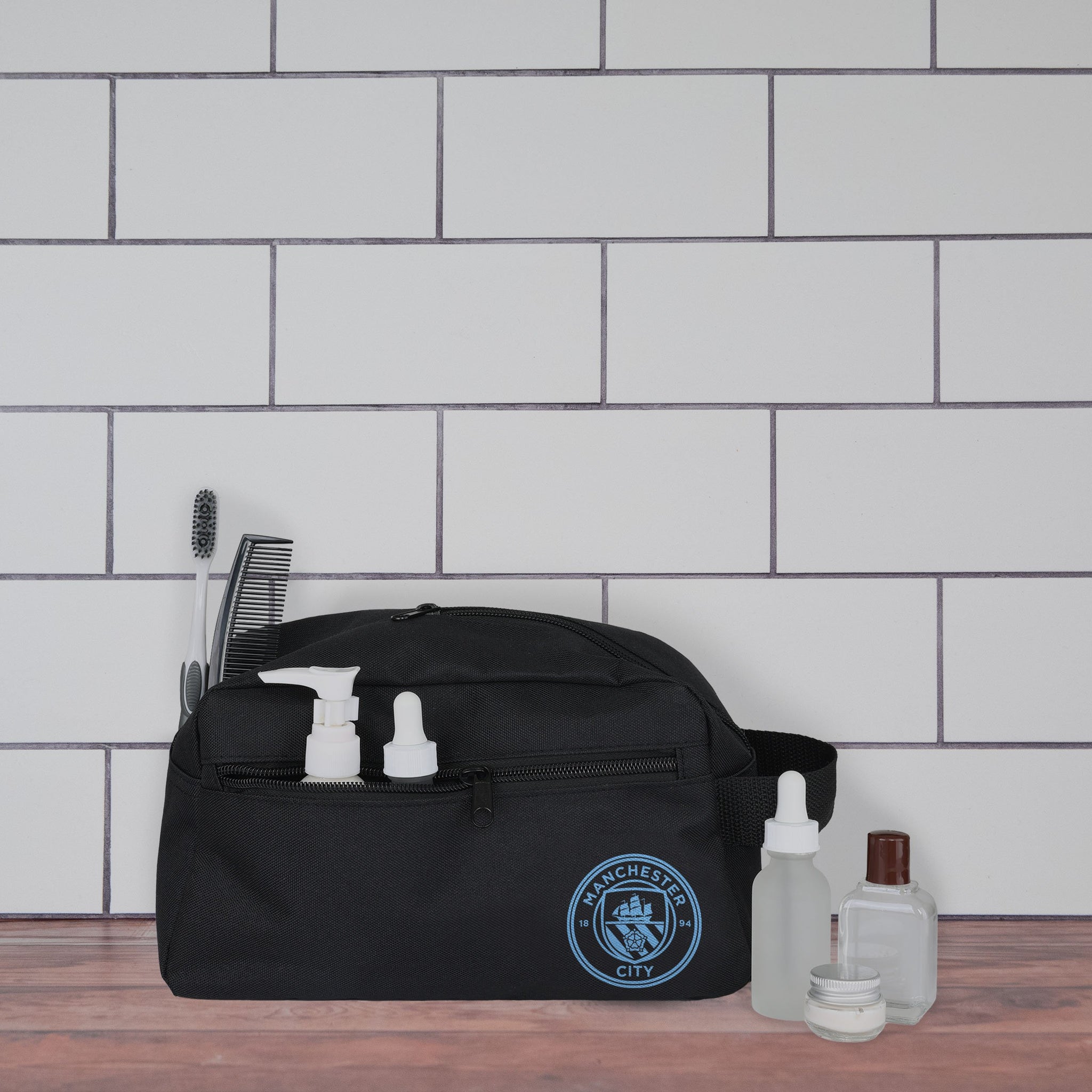 Manchester City FC Black Recycled Toiletry Bag