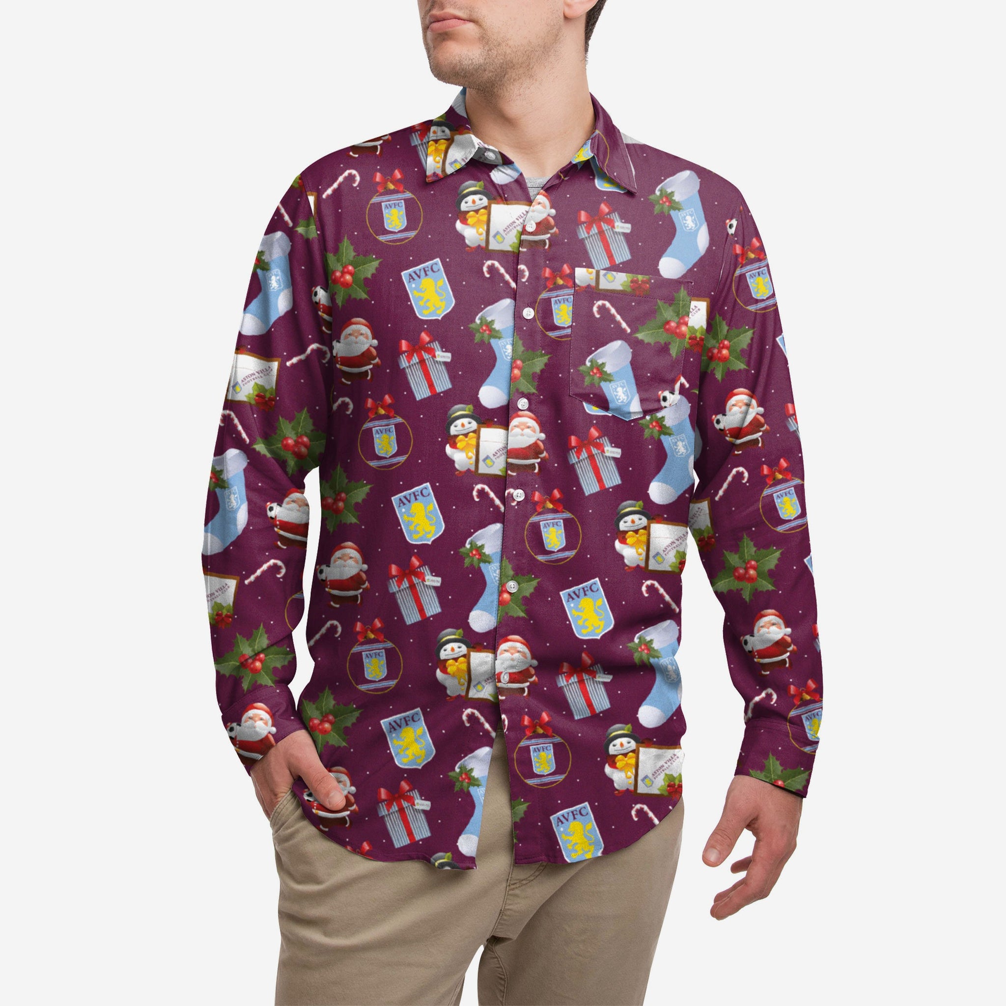 Ho ho ho-ly moly, you're going to look amazing at every Christmas party this season when you're wearing this Aston Villa FC Long Sleeve Christmas Shirt. After all, showing off your love for your club is the gift that keeps on giving.