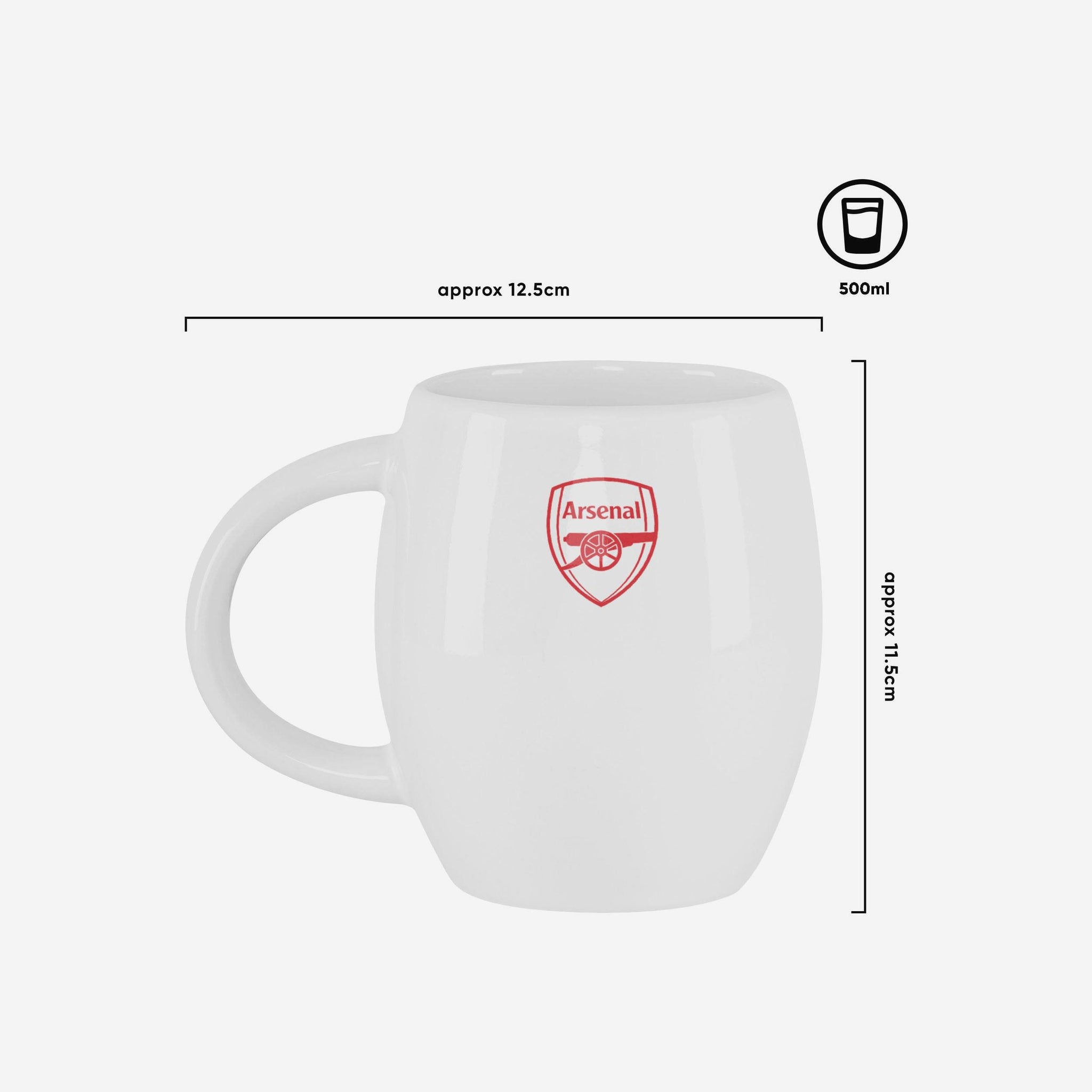Start your mornings with club pride. From sunrise to stoppage time, enjoy your beverage in style with the Arsenal FC White Tea Tub Mug.