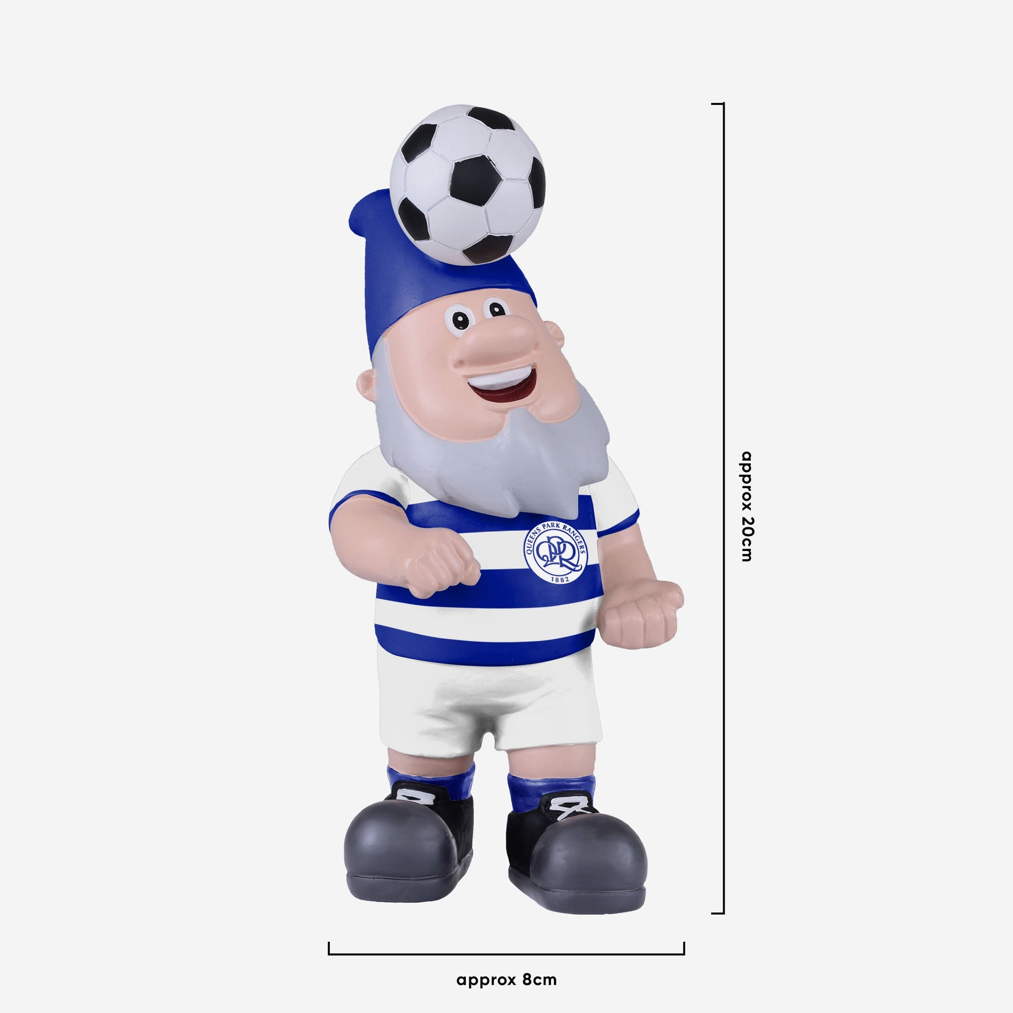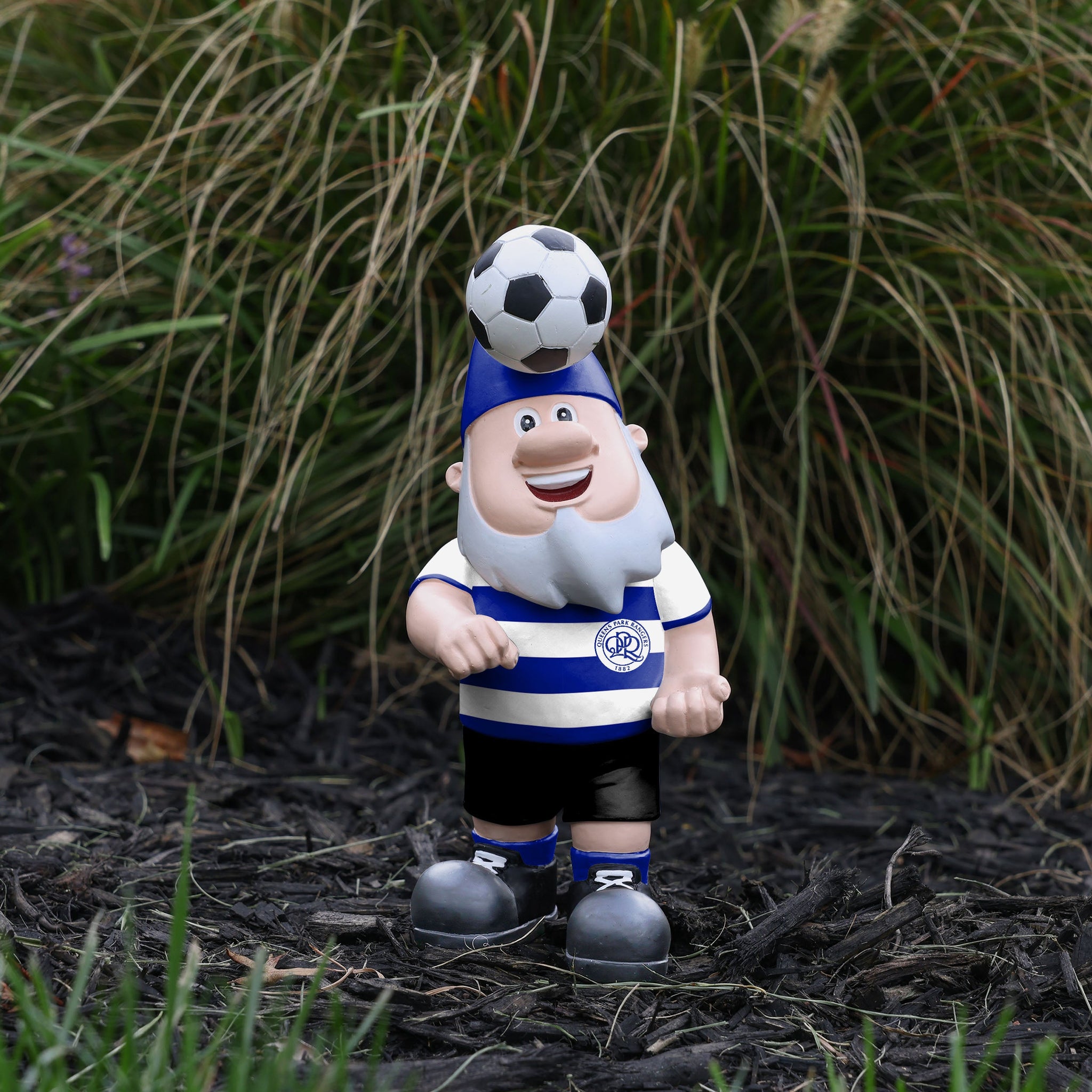 From the pitch to the friendly confines of your yard, this Queens Park Rangers FC Header Ball Gnome is ready to make the play of the match, as you can show off your club pride and your green, green grass.