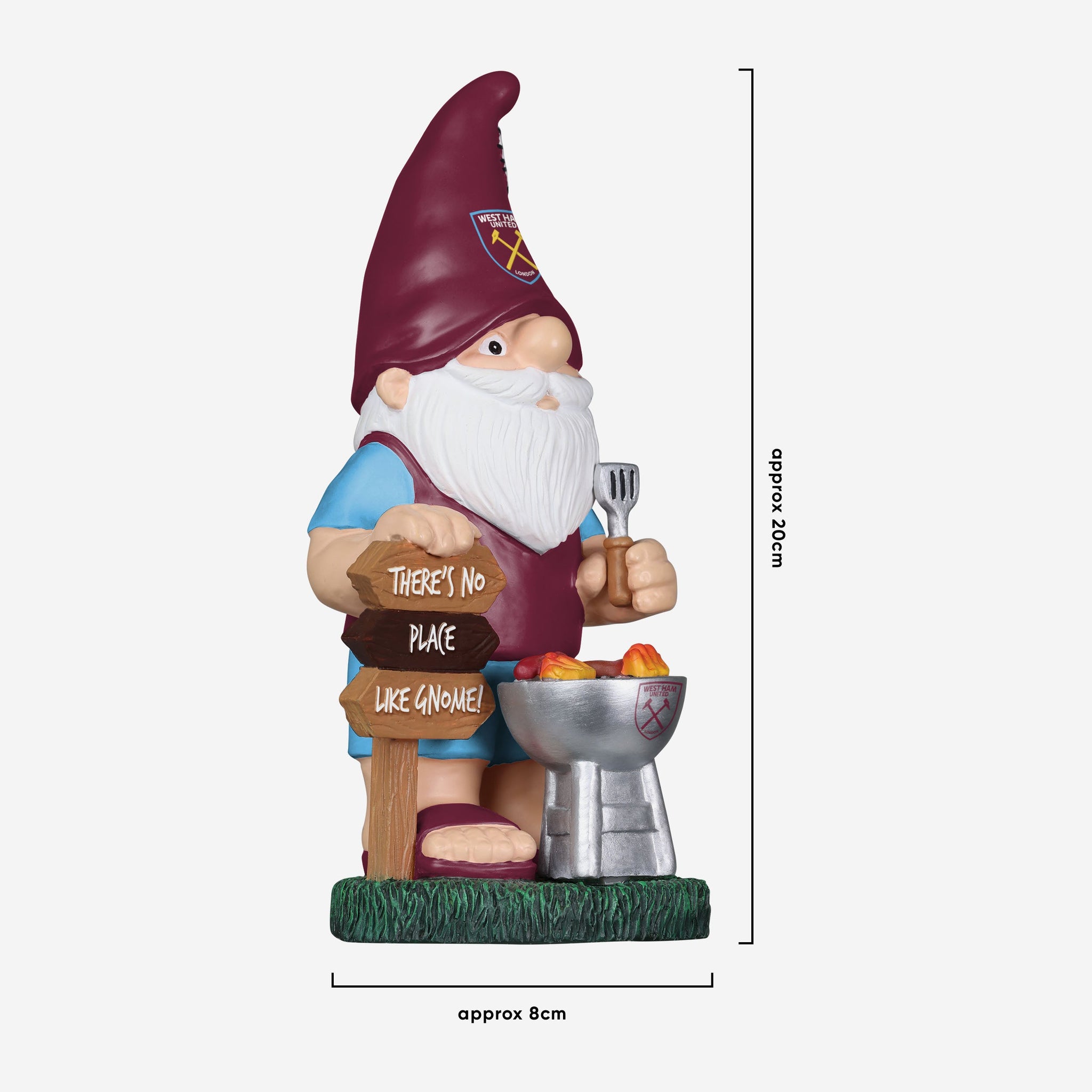 Meet your new BBQ MVP. Whether you prefer a well-done burger, medium-rare steak, or a vegan alternative, this West Ham United FC BBQ Gnome will be a perfect addition to your garden.