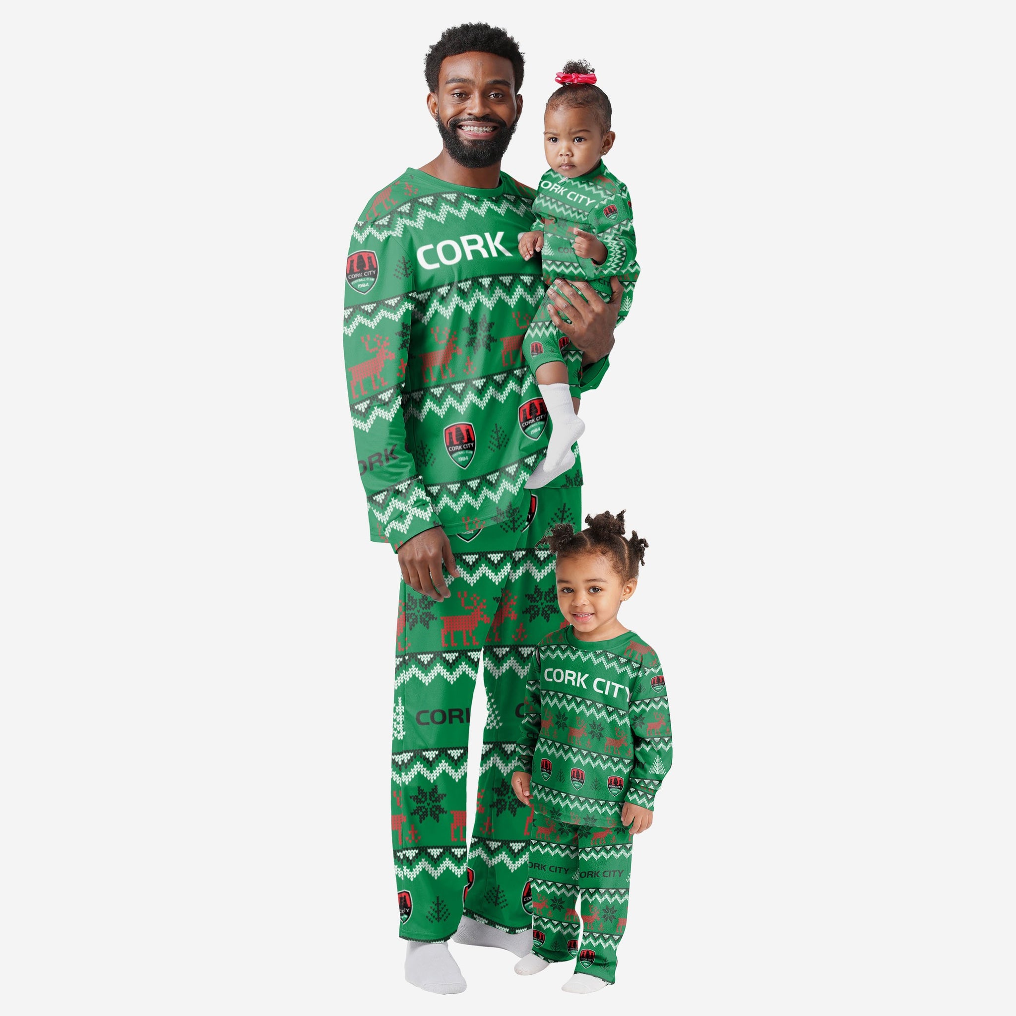 Get some matching family pyjamas and help your young fan dress to impress this holiday season! You won't want to miss these kids' team pyjamas! These youth PJ's are comfortable and show off your fan's team spirit in the form of some sweet youth jammies. Introducing the Cork City FC Toddler Ugly Pattern Family Holiday Pyjamas! Don't forget to take your holiday photo with the whole family wearing matching Christmas pyjamas!