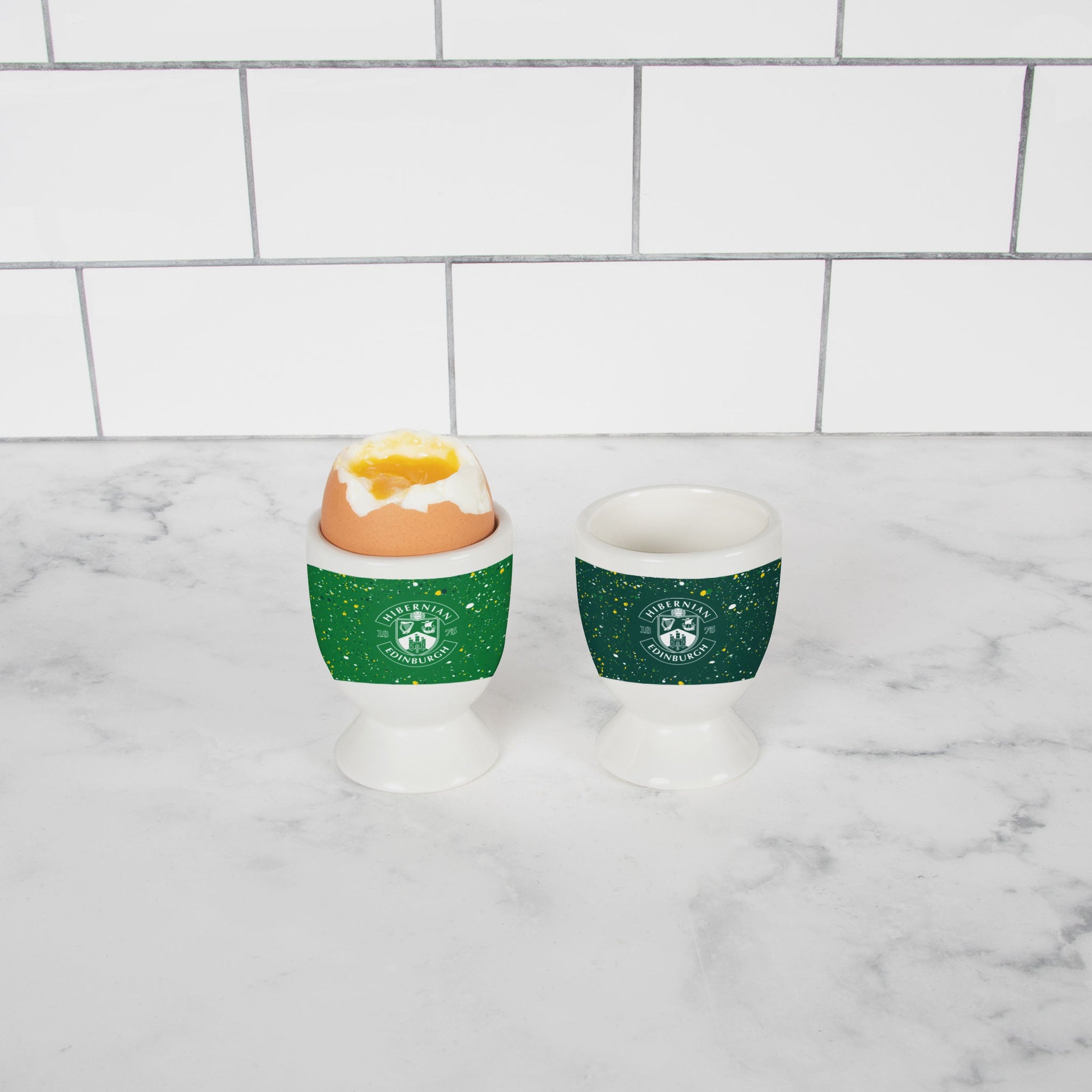 You know what they say - Breakfast is the most important meal of the day. Make it even more important with a side of club pride thanks to this Hibernian FC 2 Pack Paint Splatter Egg Cup!