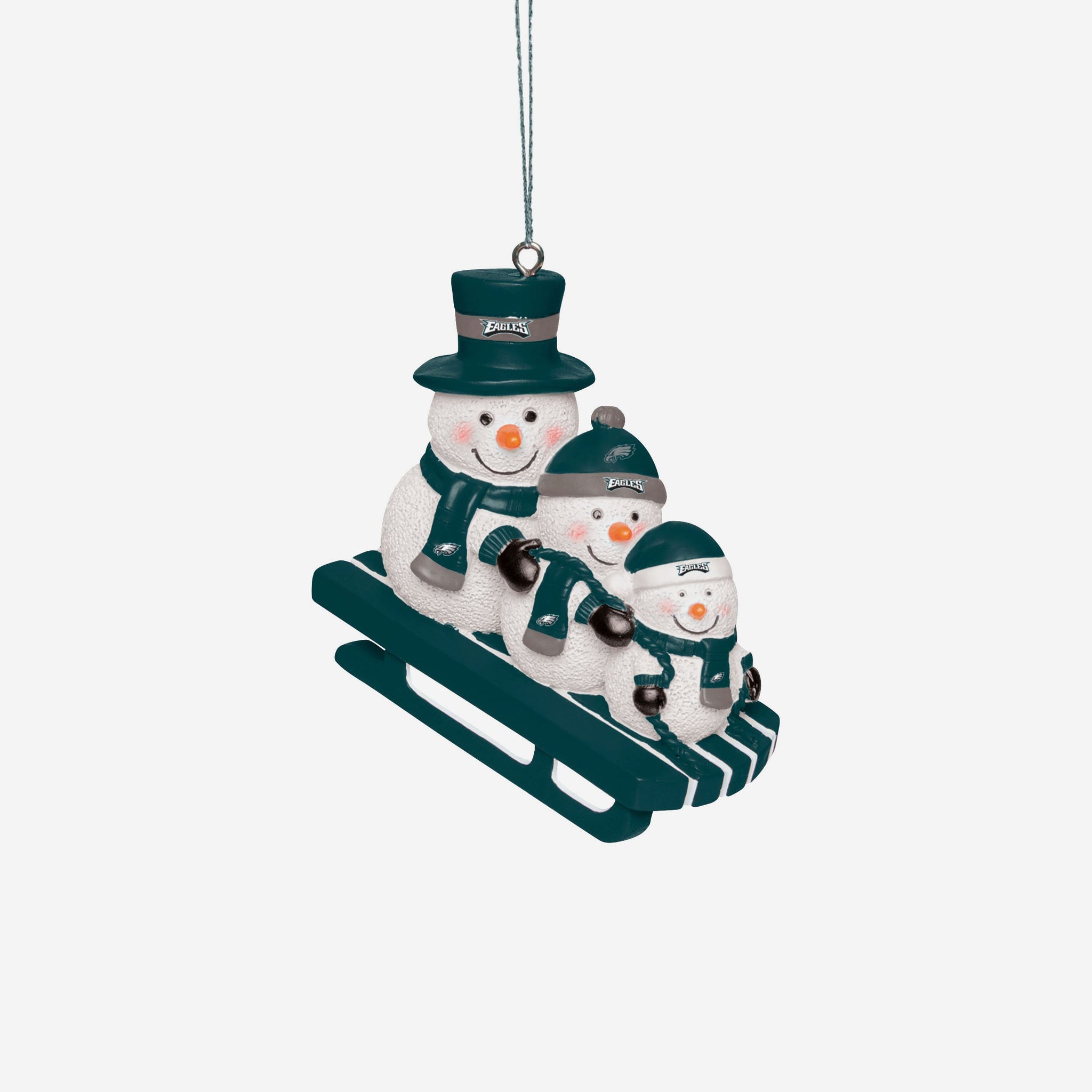 Let it snow! Get in the holiday spirit and give the gift of team pride by proudly displaying this Philadelphia Eagles Sledding Snowmen Ornament on your tree!