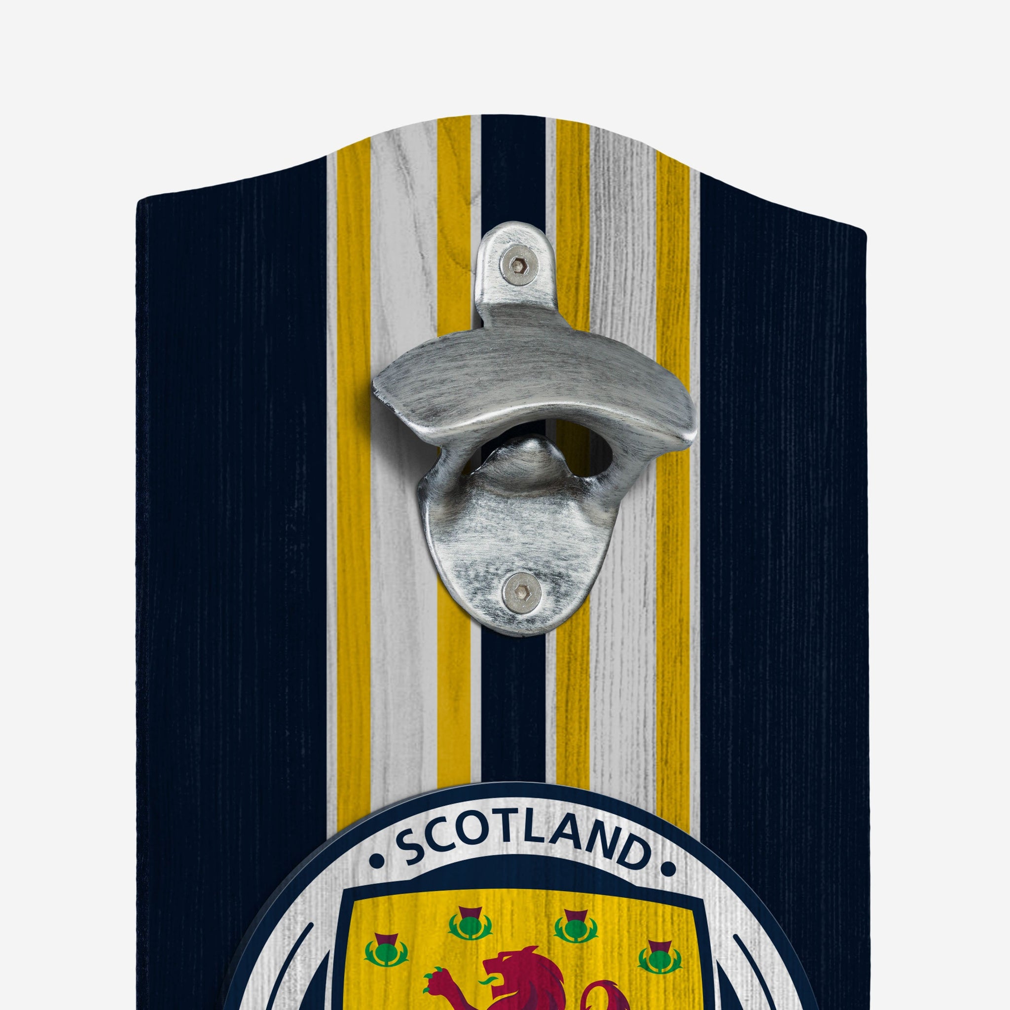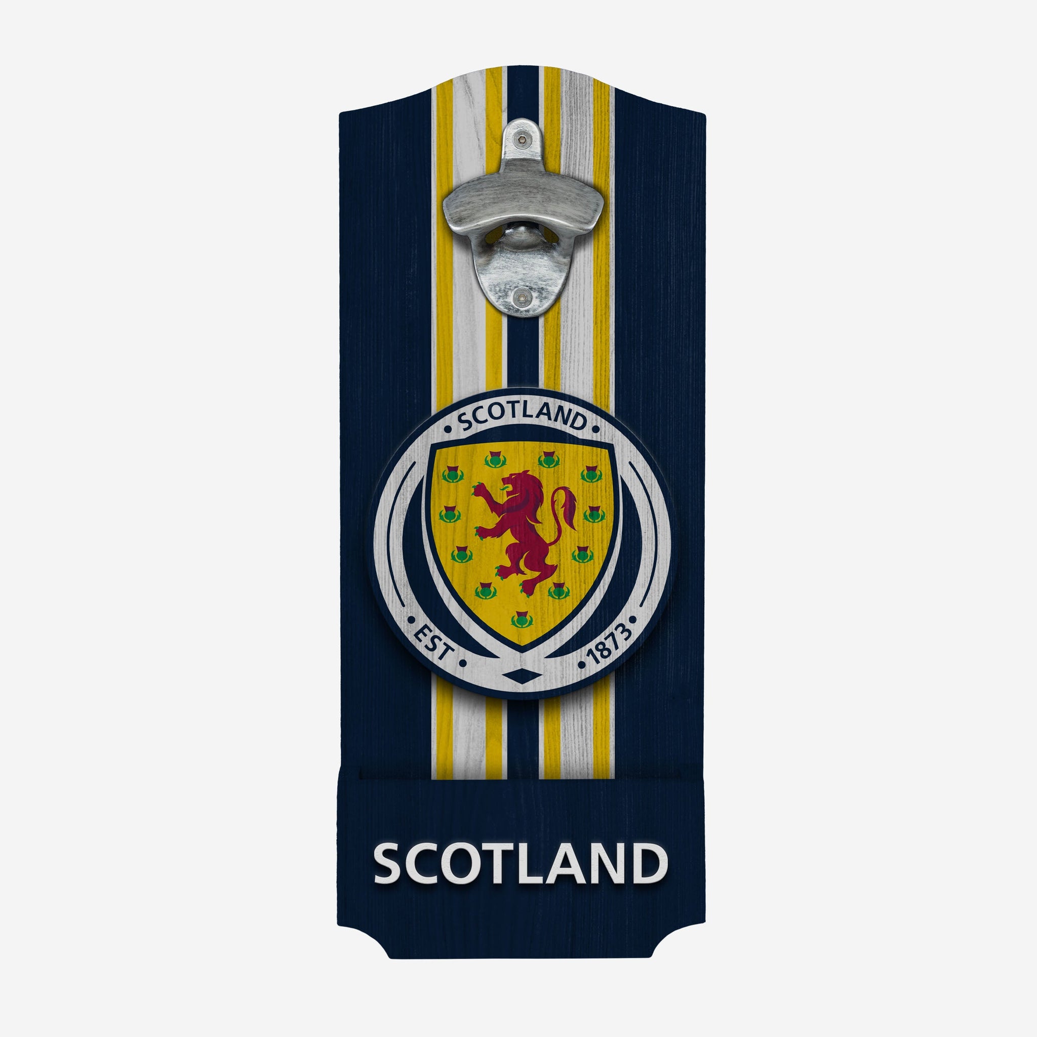 Matchday must-haves: Your lucky shirt, your favourite beverage, and this Scotland Wooden Bottlecap Opener Sign proudly on display!