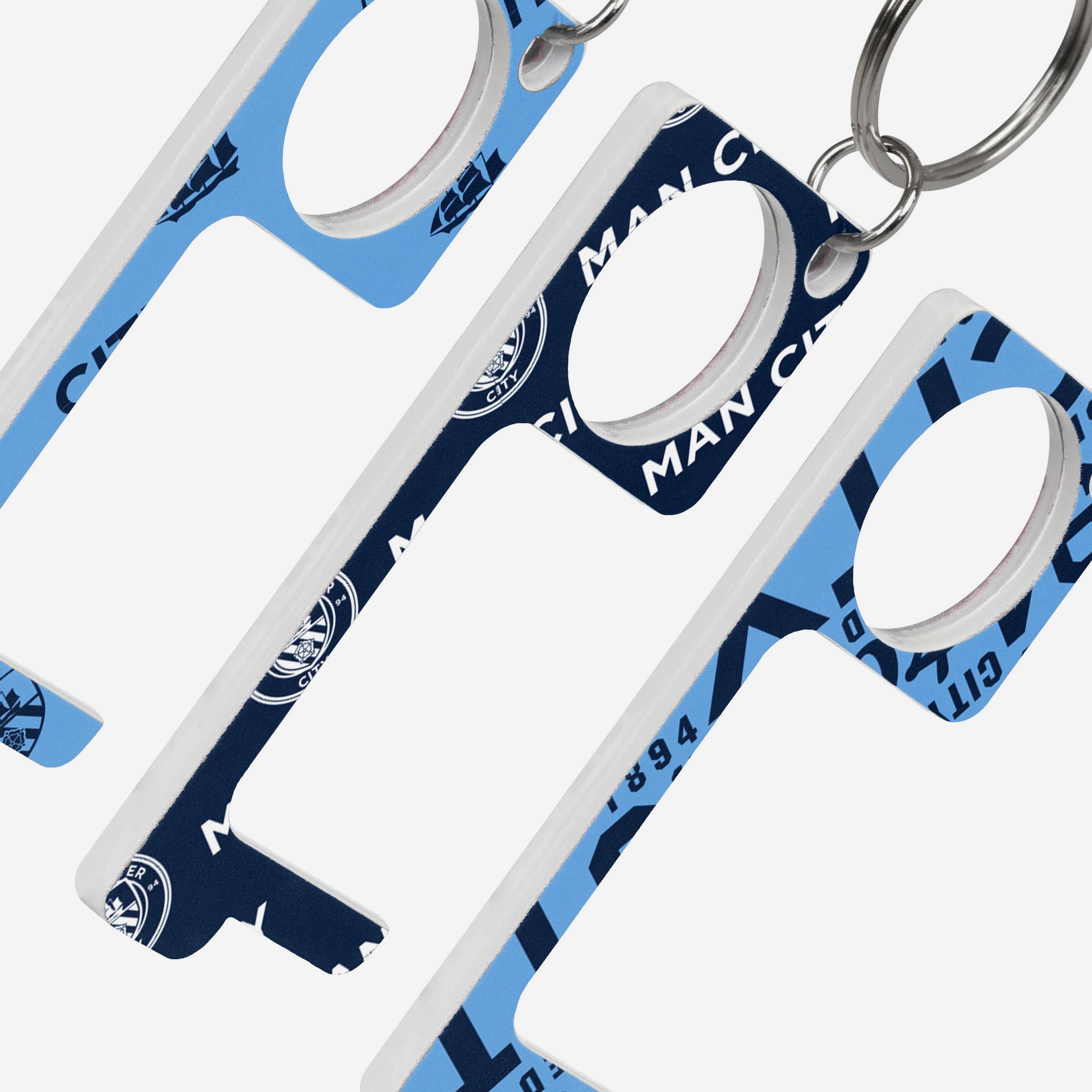 No touch, no problem! Enjoy some team spirit and peace of mind with the Manchester City FC 3 Pack No Touch Keyring!