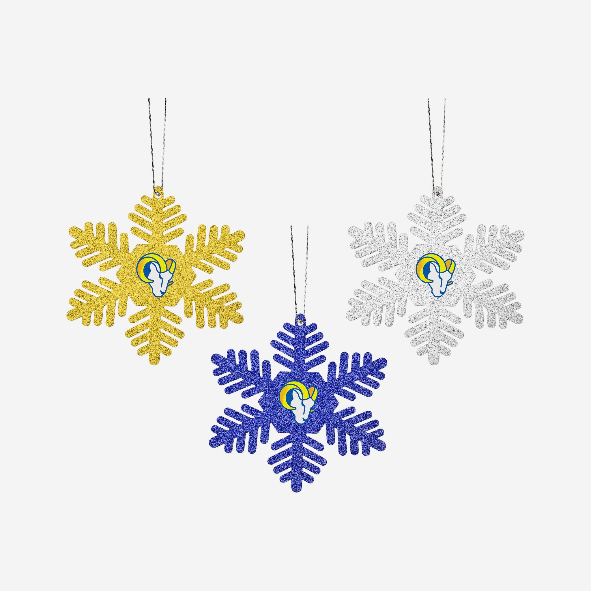 Los Angeles Rams 3 Pack Glitter Snowflake Ornament
