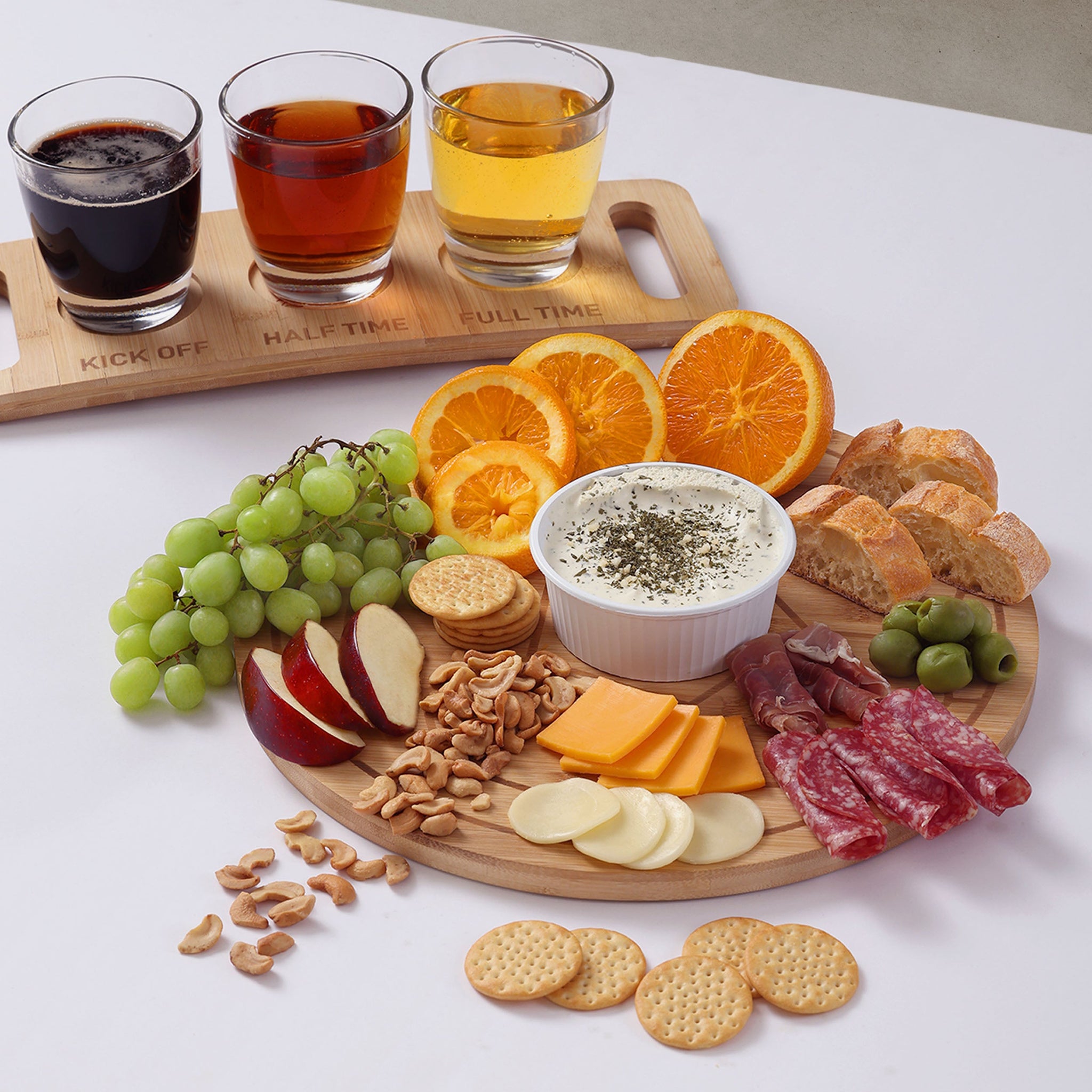 - Football-shaped serving board