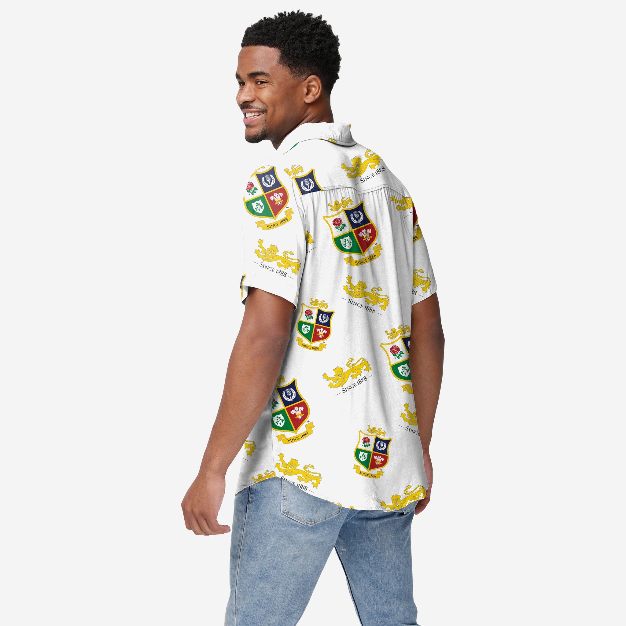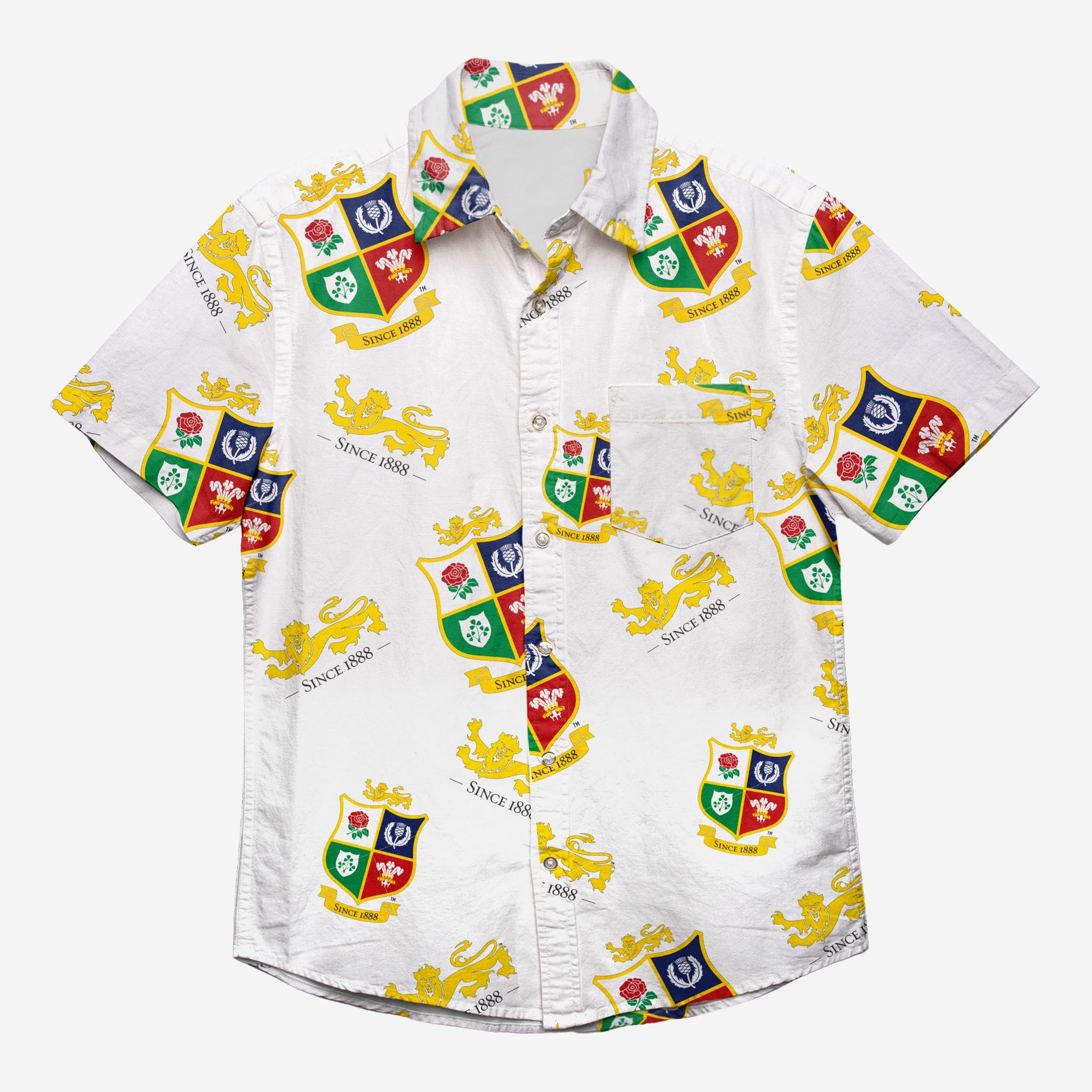 Spice up your wardrobe with some matchday-worthy style with this British & Irish Lions White Repeat Print Button Up Shirt!