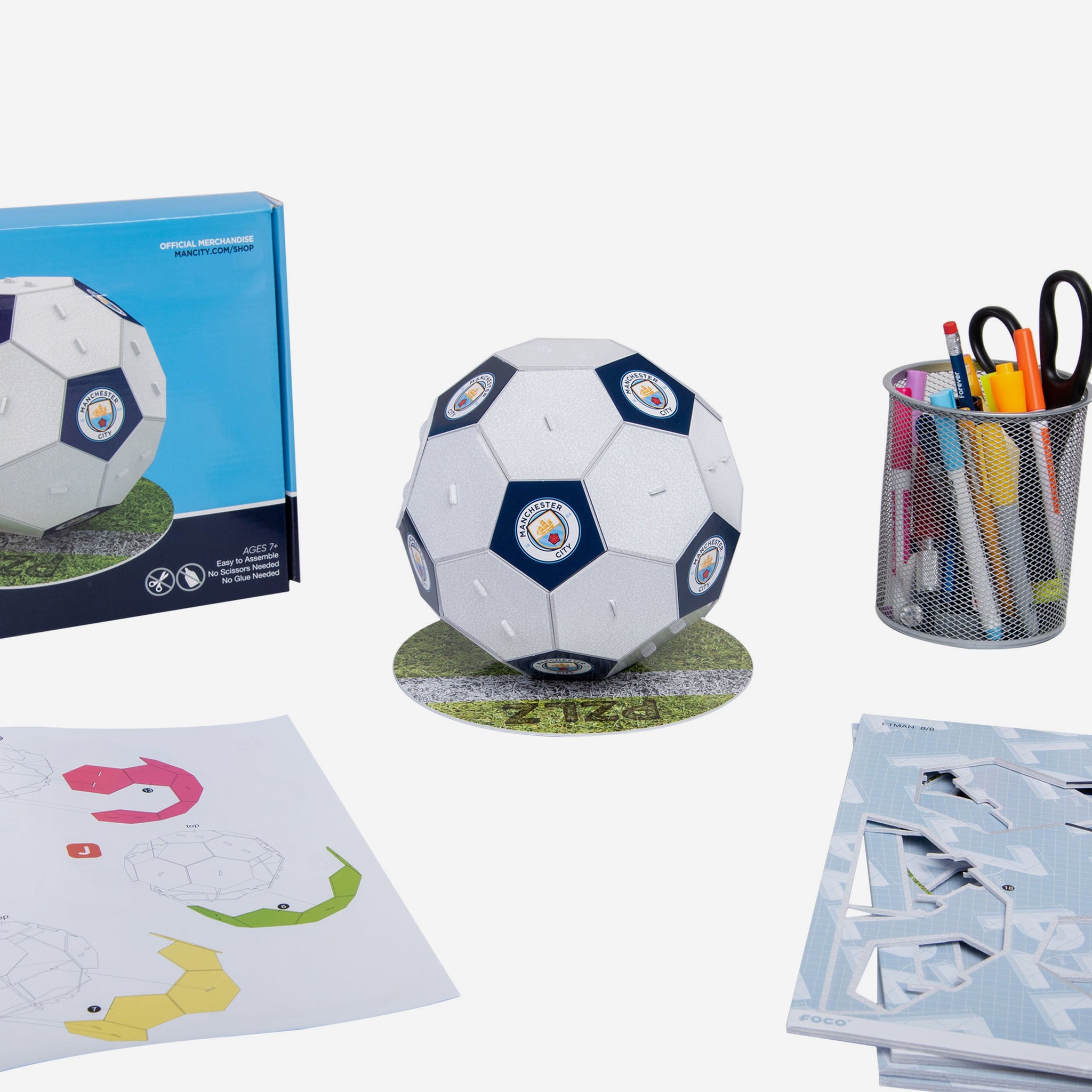 Enjoy your own personal matchday by assembling this Manchester City FC PZLZ Football! Building this is as fun as watching a dramatic goal scored by your favourite player!