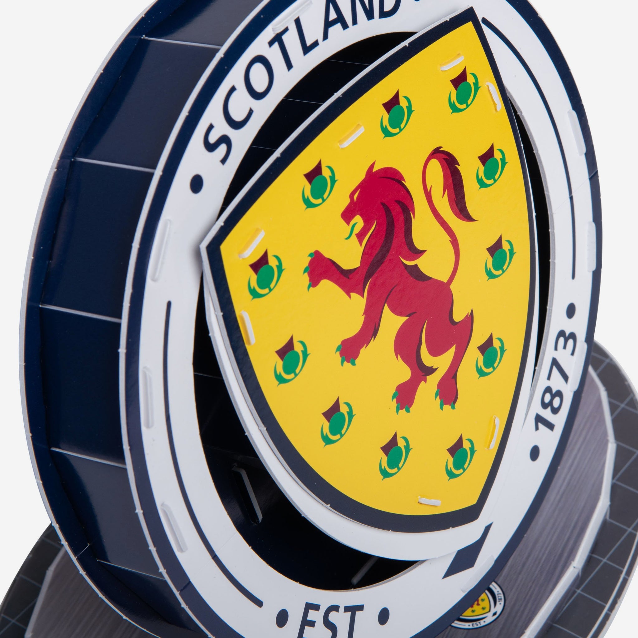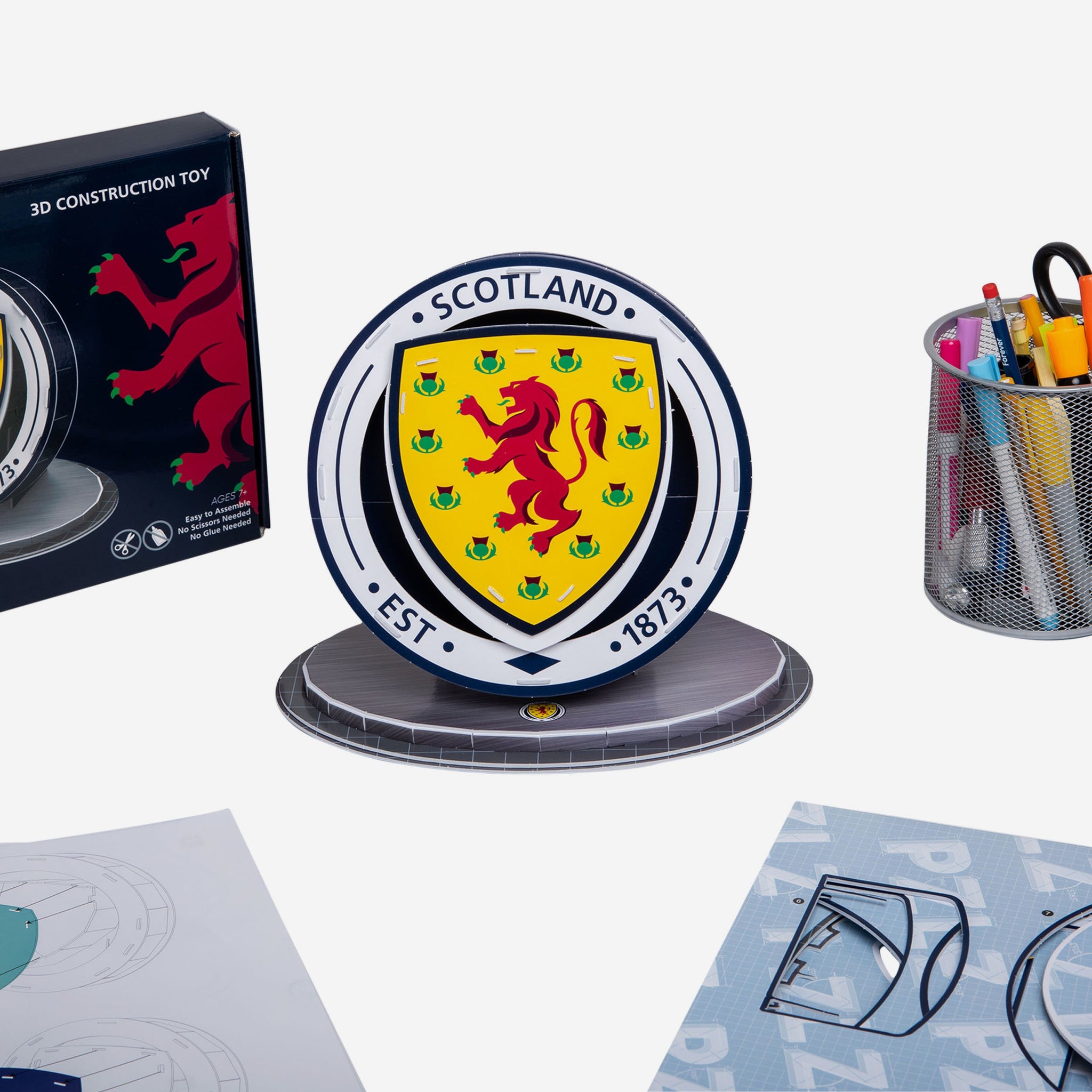- Assembles into 3D club logo