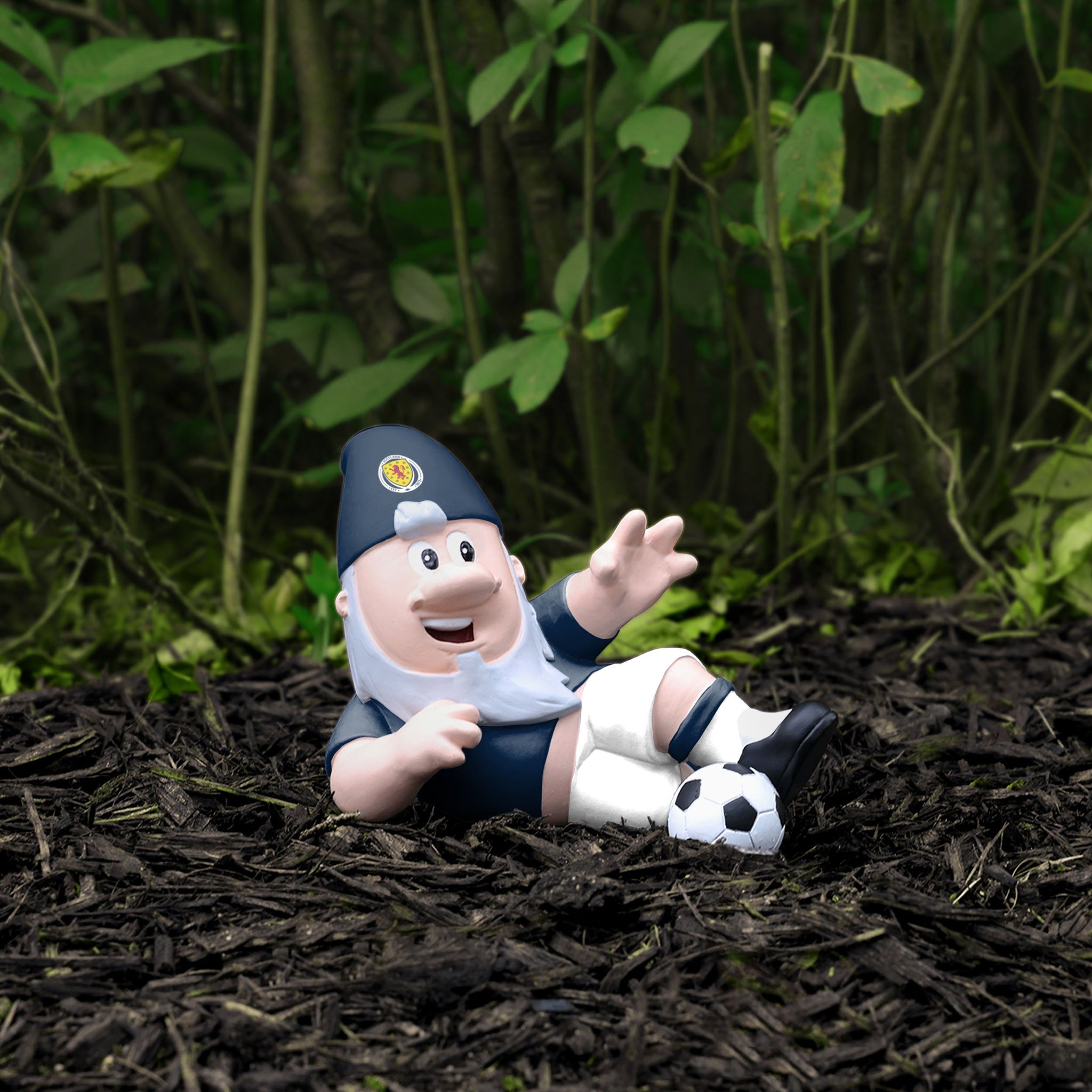 This Scotland Sliding Tackle Gnome is ready to make the play of the match as he adds some reliable defense to your own personal pitch at home.